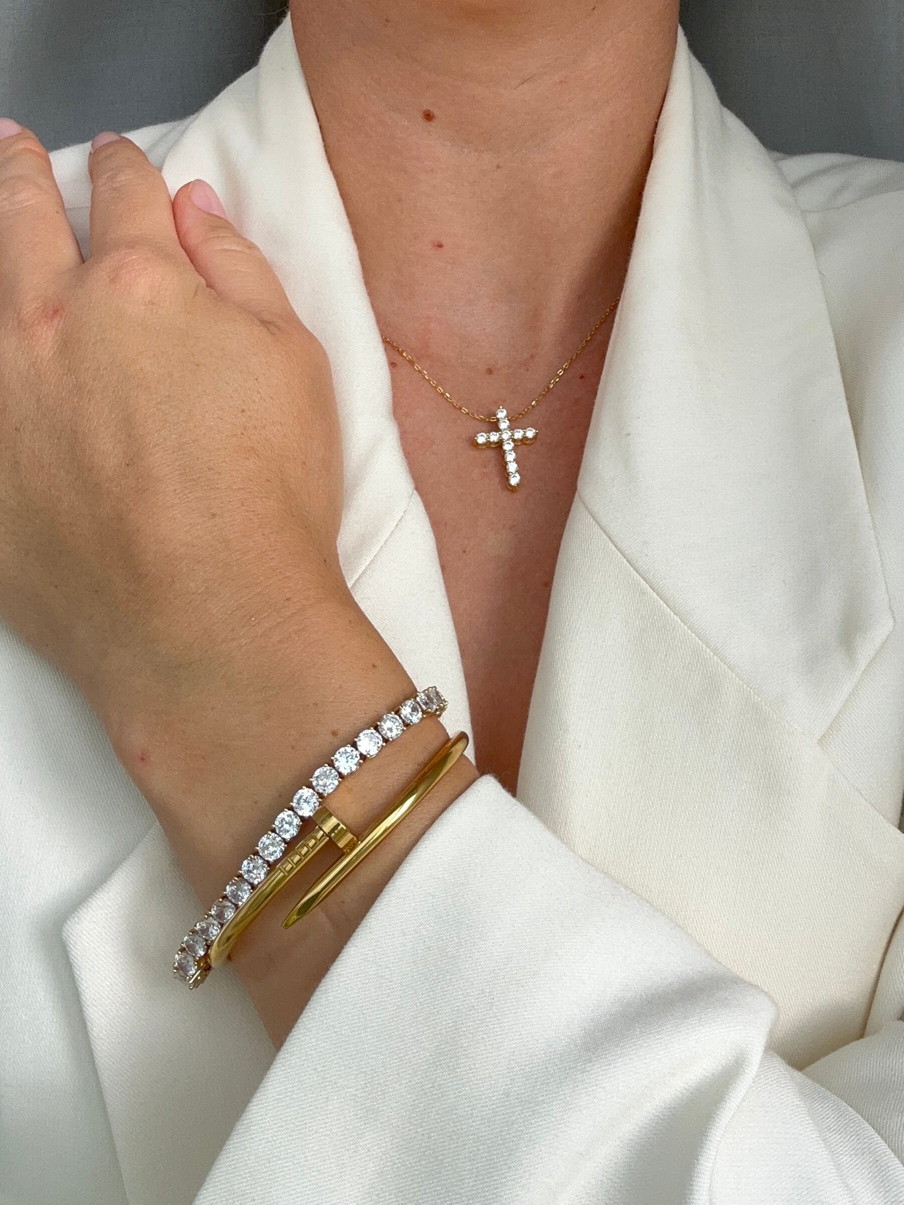 All our jewelry is made either from solid 925 Sterling Silver or solid Stainless Steel. Both plated with Silver or real 18k Gold. Every product is tested before, during and after production for quality and durability.